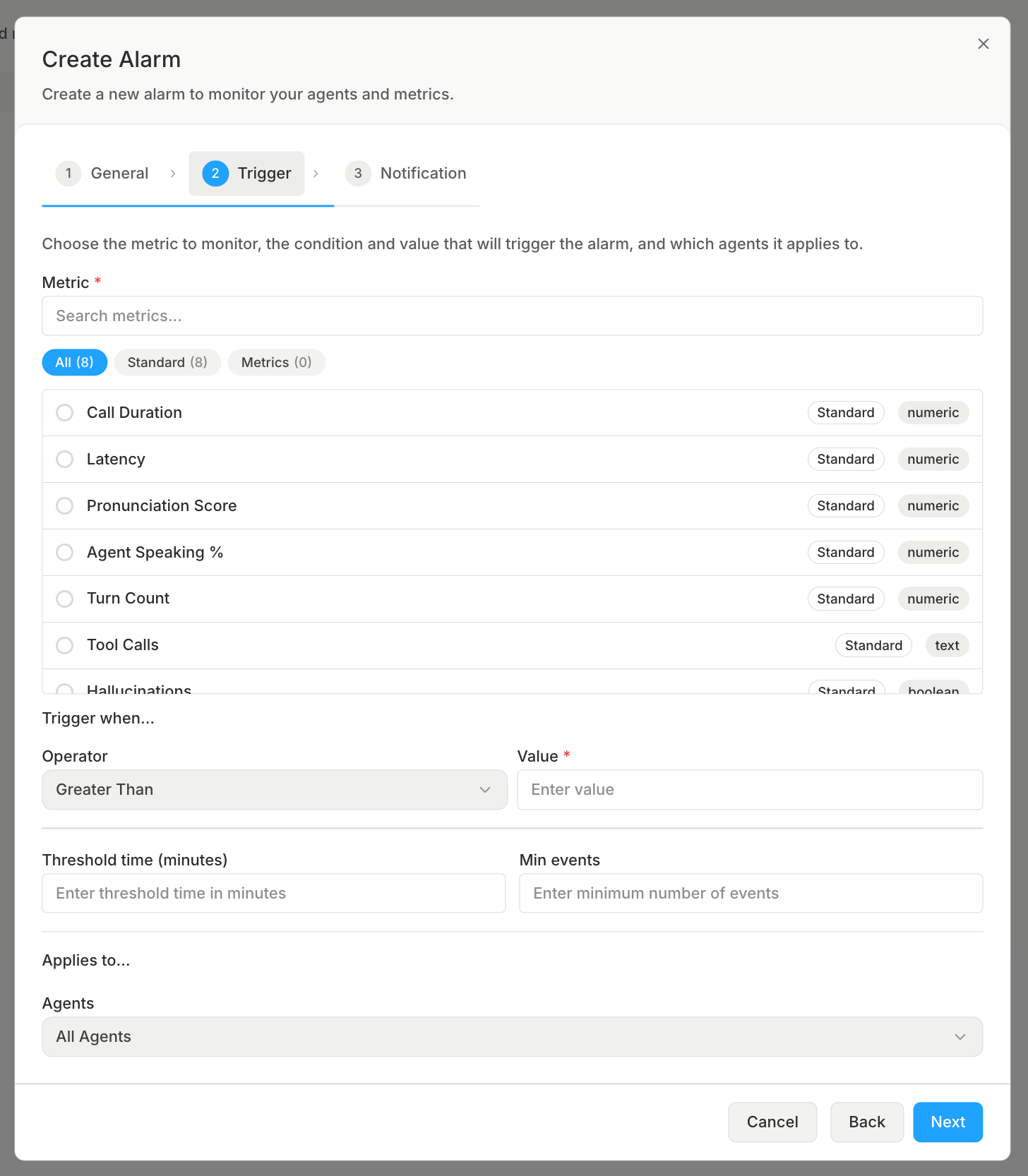 Introducing Threshold Alarms! Now, users can be notified if their agent runs into repeated failures over a specified time window.
